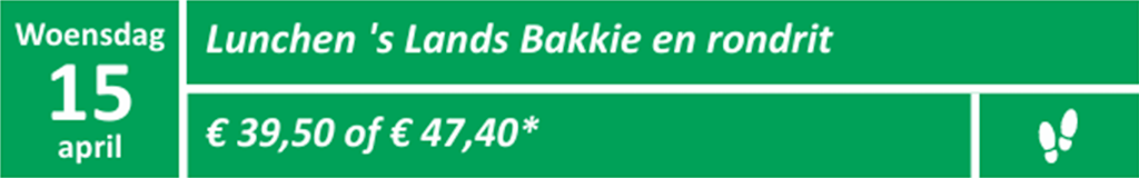 We halen u vandaag wat later op en gaan gezellig en lekker lunchen bij ’s Lands Bakkie in Zuidland.