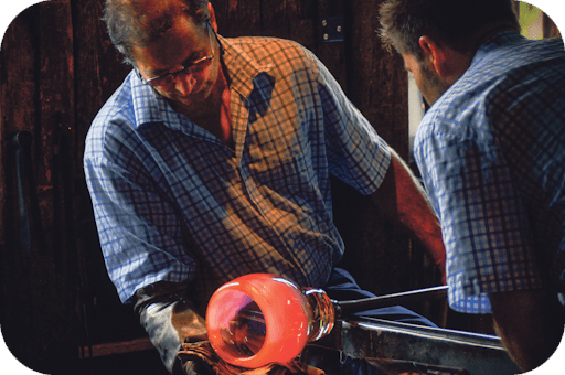 Voor jong en oud is glasblazen een van de meest spectaculaire ambachten. De glasblazerij is een creatief laboratorium waar kunstenaars en ontwerpers experimenteren met glas.