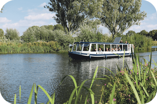 Deze elektrisch aangedreven boot vaart langs de leukste en prachtigste natuurplekjes in de Bernisse Een mooie tocht die extra kleur krijgt door de verhalen van de gids over deze omgeving.
